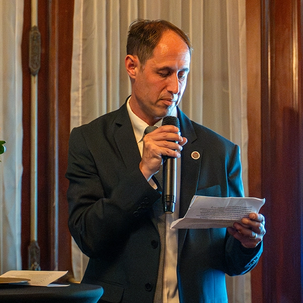 “Good evening, everyone, and thank you for coming tonight. It is fitting for us to gather in the Bettendorf mansion, a site that represents our proud history. For 141 years, this school has educated Quad Citizens, and now we also educate students from around the world. The school has changed over time, but the excellence of a Rivermont education has been a constant. Our small class sizes and close relationships enable students to take intellectual leaps, develop character, and cultivate creativity.